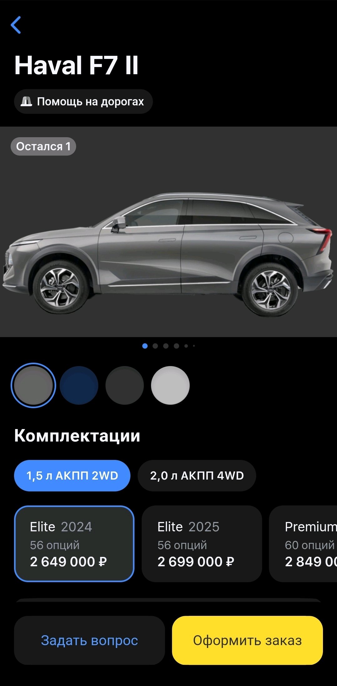 Предзаказал Haval F7 (f7x дико не понравился толстенным рулём) в комплектации теч+, за 3.3 с коврами, сеткой в бампер, антикором, брызговиками и зимней резиной (но если она будет говно, откажусь за скидку по крайней мере пока такой уговор).