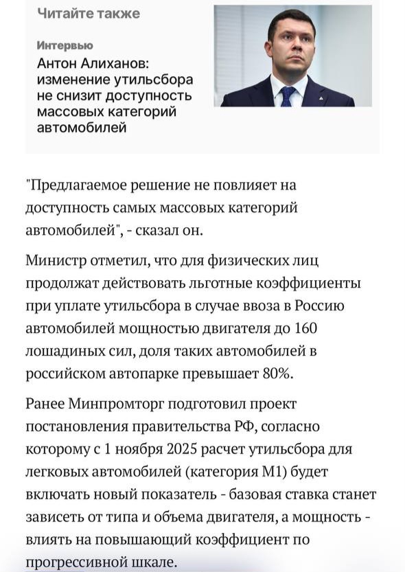 >>6667959 Ага, только вот 218 тысяч человек о которых говорил алиханов, платили не только утиль в 5200 рублей, они платили расстаможку, в среднем по рынку около 700 т.р. на ебло. Но в 2026 году из-за его постановления эти 218 000 человек превратится в ноль, соответственно бюджет не получит более 150 миллиардов рублей от таких таможенных платежей. Поэтом я повторю свой вопрос, там реально ебланы с двумя классами образования работа или клоун на алиханове чисто прикалывается?