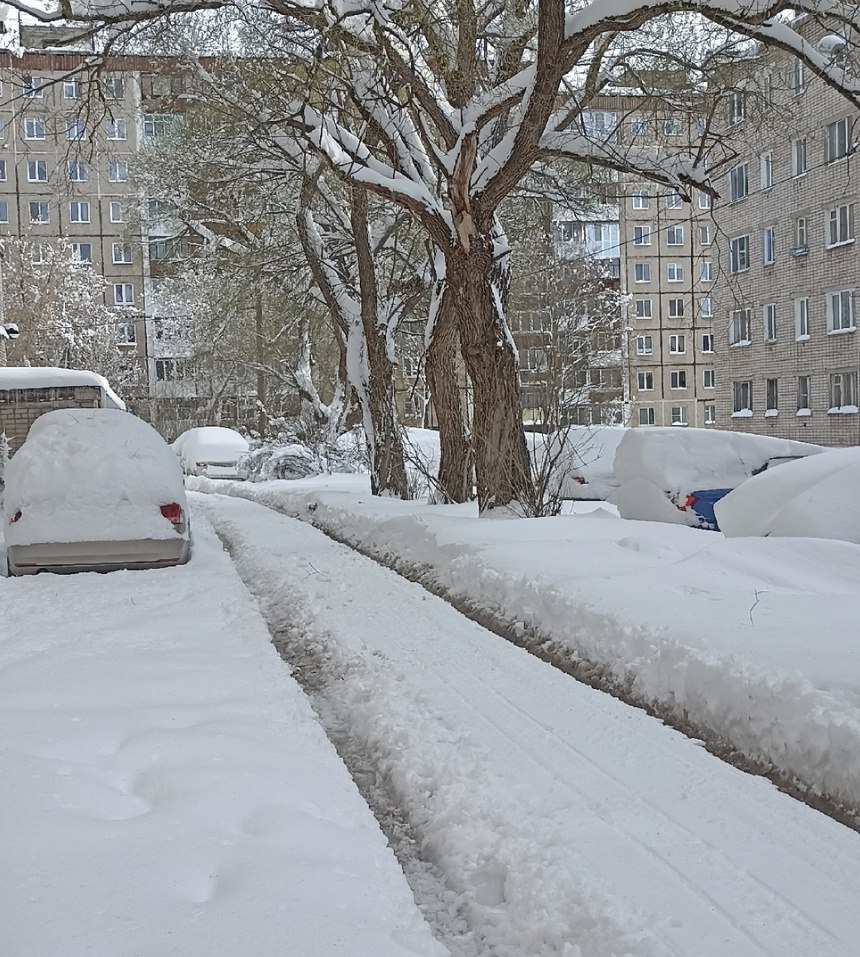 мимо сибирь с таким же снегом, двор и прилегающие дороги не чистятся ни разу за зиму, двухполосные дороги к концу зимы превращаются в однополосные, везде колеи вплоть до 15 см