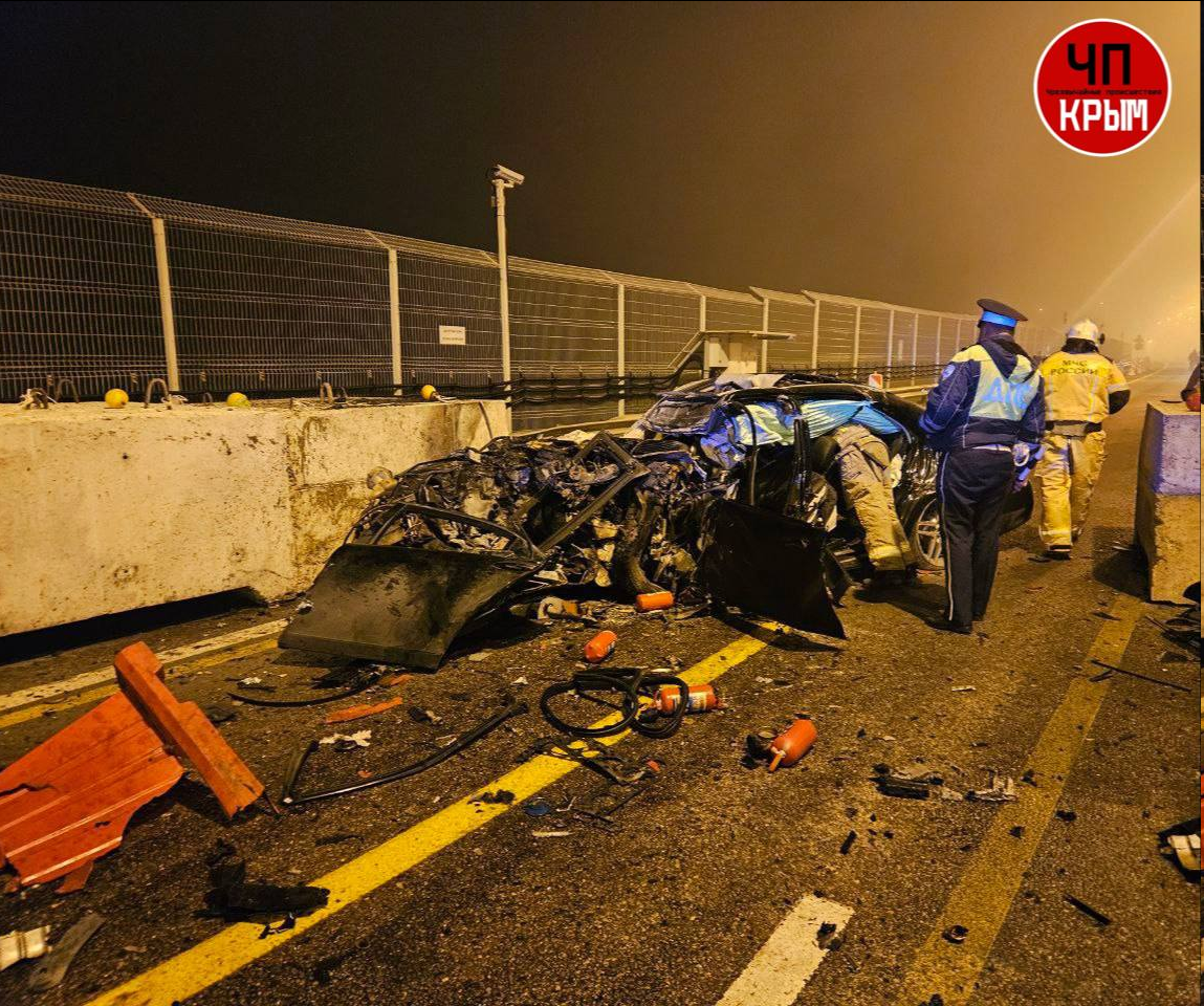 >Два человека погибли в ДТП на Крымском мосту. >Водитель автомобиля «Мерседес Бенц», пытаясь обогнать пассажирский автобус «Краснодар-Севастополь», не справился с управлением и врезался в бетонное ограждение. В результате аварии водитель и пассажир «Мерседеса» погибли, двое детей госпитализированы