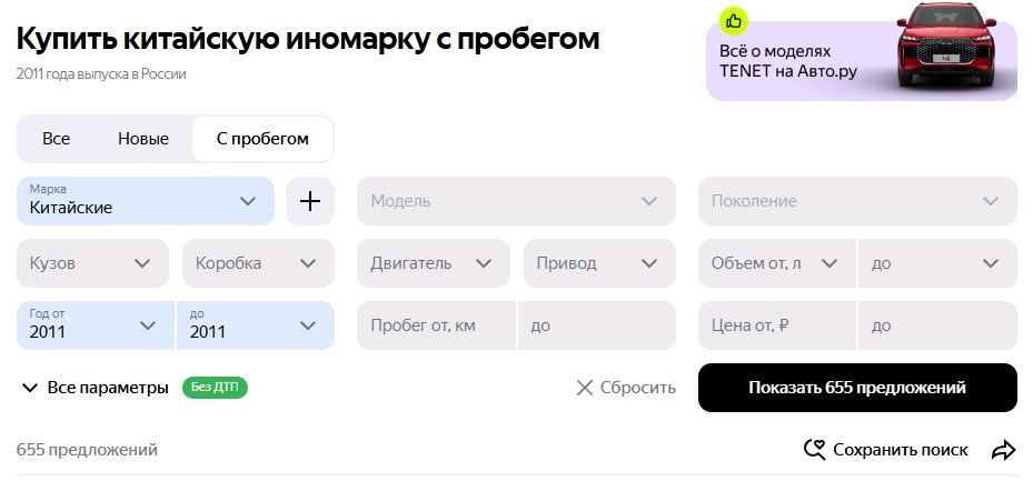 Сейчас на авто ру продается 655 китая и 35к остальных. Доля Китая поднялась до 1.8% То есть их дожило до 2025 удельно больше чем тех 2.6 млн проданных.