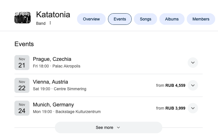Лойз я был 4 раза на концертах Katatonia на руси - в 2008, 11, 14, 18. Помню забитые под упор огромные залы Точки и площадки на Дербеневской. Как мне попастьна московский концерт в этом году? Почему в Праге будет, а на Москве нет?