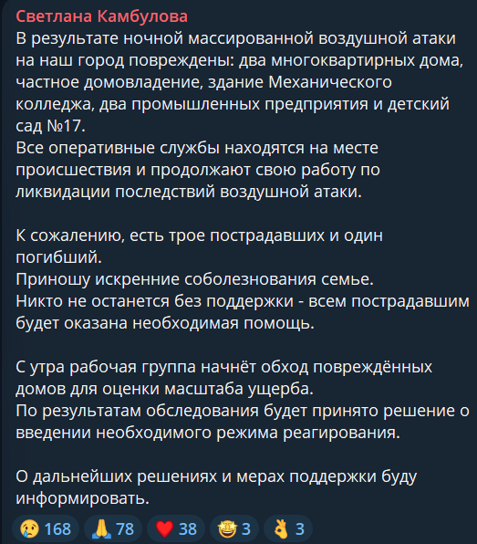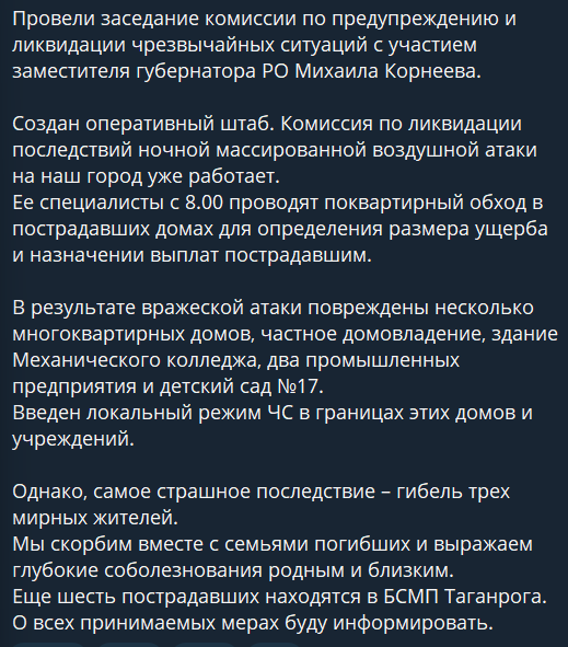 В Таганроге Ростовской области украинский дрон рухнул в центре города — на место вызваны саперы. Кроме того, повреждены многоквартирный дом, частные дома и общежитие техникума стройиндустрии и технологий, жителей общежития эвакуировали.
