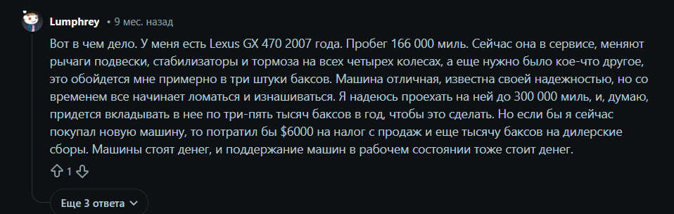>>6709134 Вот на реддит зашёл почитать тред с похожим вопросом(пик2). Вот что про некоторые машины там пишут(пик1). Как бы, об этом и речь. Я хочу спрогнозировать и минимизировать подобные траты, о которых он пишет