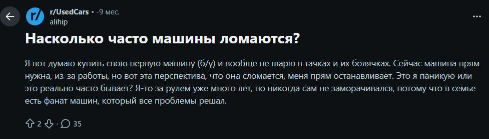 И если это неправда, и б/у машина это не такой плохой вариант, то очевидно это не про все б/у авто актуально. Например ДОПУСТИМ машины старше 10 лет уже невыгодно брать из-за того что придется постоянно вливать бабки в ремонт. Или ДОПУСТИМ это актуально только для хороших иномарок, а китайские или отечественные авто начинают сыпаться через 5 лет. Цифры просто для примера, чтобы вы понимали о чём я.