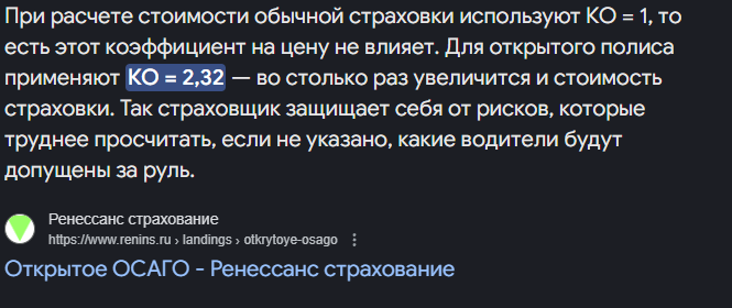 >>6709912 Бляяяяяяяяяяяяяяяяяяяяяяяяяяяяяяя.Это троллинг.Короче, коэффицент действует не на машину а на отдельного человека, у твоего деда допустим коэфф 0.4 у тебя 1.17 как у новичка, этот коэфф подставляется в формулу где твой регион кажется, машина и тд и считается.