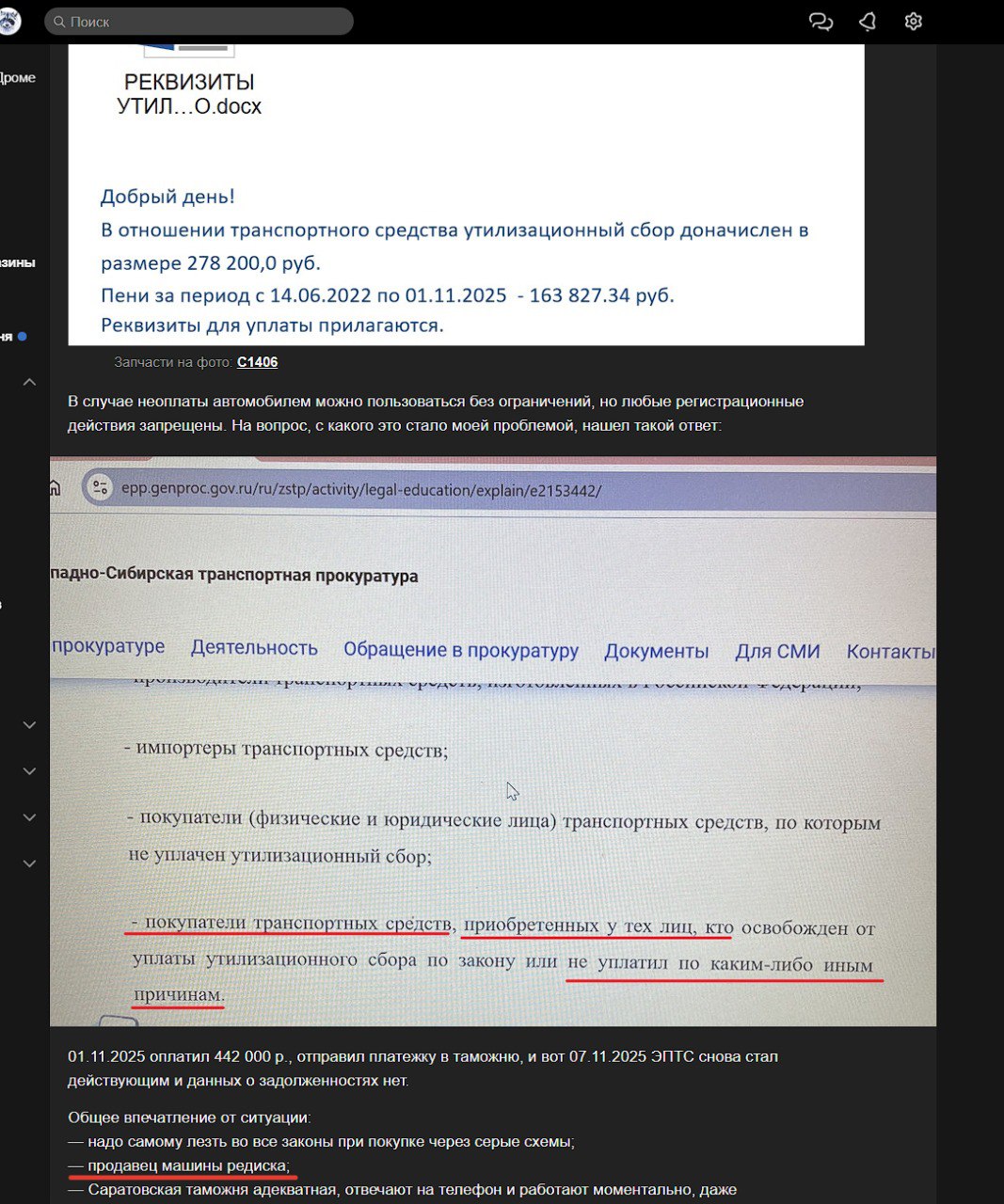 Драма в двух картинках. Человек купил паджерика из Эмиратов подешевле по параллельному импорту еще в 2022. В октября этого года аннулировали ПТС. Нужно доплатить пошлину + пени в 442.000руб.
