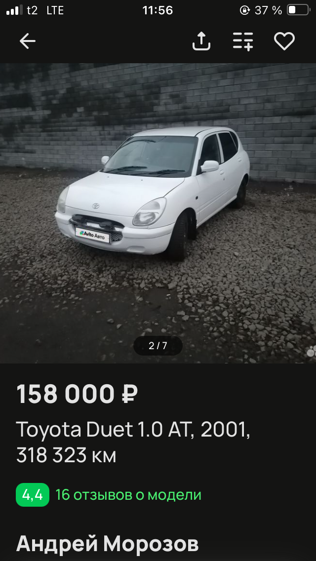 Ты опять выходишь на связь? Ну ладно, скорее всего дубликат птс, скорее всего гнилая и некуда даже приварить порог, т.к. это на самом деле дайхатсу, а не тойота и их не цинковали как и любую дешмань японскую, а ездила она 20 лет по солям в рф. Уже по фото вижу что ни один зазор там не сходится - возможно лютое битье с поехавшей геометрией всего - возможно развал на ней никогда уже не сделается и ехать прямо она не будет. Возможно есть масложор и мотор под капиталку, возможно уходит антифриз, возможно необслуженные тормоза и подклинивает суппорт или бьет при торможении, возможно есть люфт руля и нужна замена крестовин или ремонт рулевой рейки. Усосанный мамочками салон, чьи дети там ели сладкое и крошили везде. Одна фара новее другой, бампер покрашен на похуях поверх хромомолдингов и черных заглушек птф - продавец перепук.