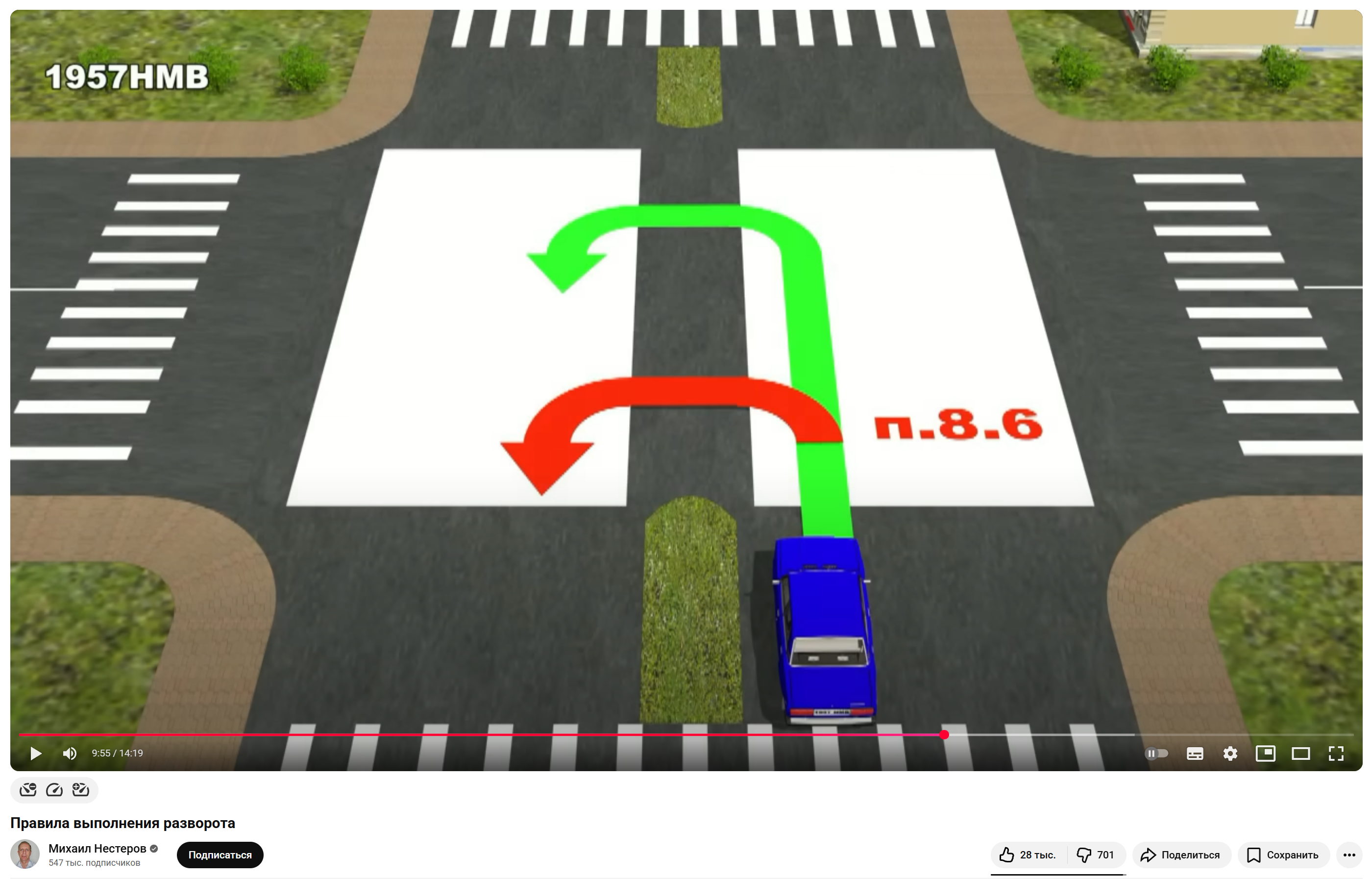 Антоний, я тебе покушать принес а не ты ли утверждал, что разворот не является "двумя левыми поворотами" и потому 8.6 к разворотам не применим? https://www.youtube.com/watch?v=X0MWboYlUrw