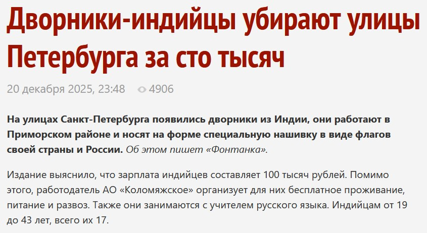 >>6726611 Рашка такая же нищая дыра, еще и на сво могут пригласить. И интернета нормального нет или почти нет. Просто тех же 20к индусов, которые приехали только на прошлой неделе в мск, по словам моего знакомого кабана, привлекают именно сразу высокими зарплатами (+обещаниями кое-чего еще интересного, но это за рамками этого разговора, чтобы попку русичам не порвало), которых у обычных степашек нет и никогда не будет. В противном случае, даже бангладешцы не поехали бы в рашку, ибо сейчас даже беднейшие районы Индии выигрывают у рашки по всем статьям.