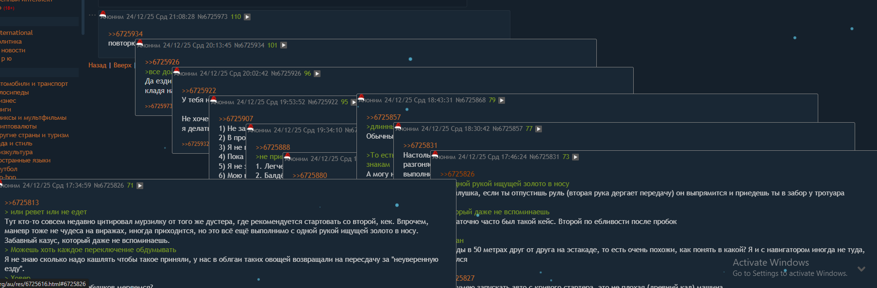 >>6725813 > или ревет или не едет Тут кто-то совсем недавно цитировал мурзилку от того же дустера, где рекомендуется стартовать со второй, кек. Впрочем, маневр тоже не чудеса на виражах, иногда приходится, но это всё ещё выполнимо с одной рукой ищущей золото в носу. Забавный казус, который даже не вспоминаешь. > Можешь хоть каждое переключение обдумывать Я не знаю сколько надо кашлять чтобы такое приняли, у нас в облгаи таких овощей возвращали на пересдачу за "неуверенную езду". > Ховер Мы сейчас на совсем хлебушков меряемся? > В 2к25 На карту в телефоне, если так удобнее > 1-й или второй съезд с проспекта/эстакады? А это был тот или нет? Если такой туман, что дальше 20 метров ничего не видно, то по знакам всегда понятно > А где поворот именно в тот двор, если 20 метров до и 20 после есть еще? Второй поворот от светофора, всё на карте есть. Зачем панорамы, у дубльгиса чуть ли не кусты отмечаются на схеме, и все кроме яндекса их выгрузками закупаются.