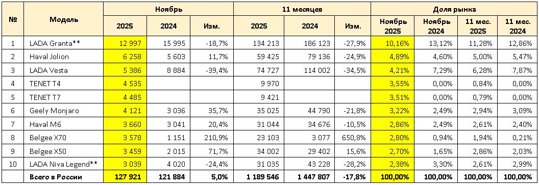 >>6726263 → >Тиволи взять авто за 2.5 млн на гидроавтомате, назови модель от китайцев с АКПП за такую цену Так-так, этот убийца джолиона начал продаваться в марте. Ну ок, дадим ему полгода на раскрутку. Вот топ 10 продаж за сентябрь, октябрь и ноябрь. Помоги найти здесь корейский хидден гем на АКПП - у меня что-то не получается... Неужто Автостат стал китаелахтой и скрывает правду от народа?(