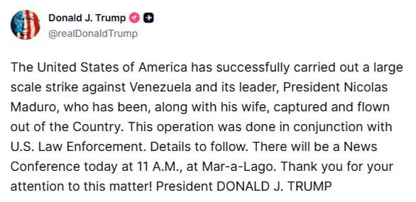 Там господарь Трамп начал специальную военную операцию против Венесуэлы.