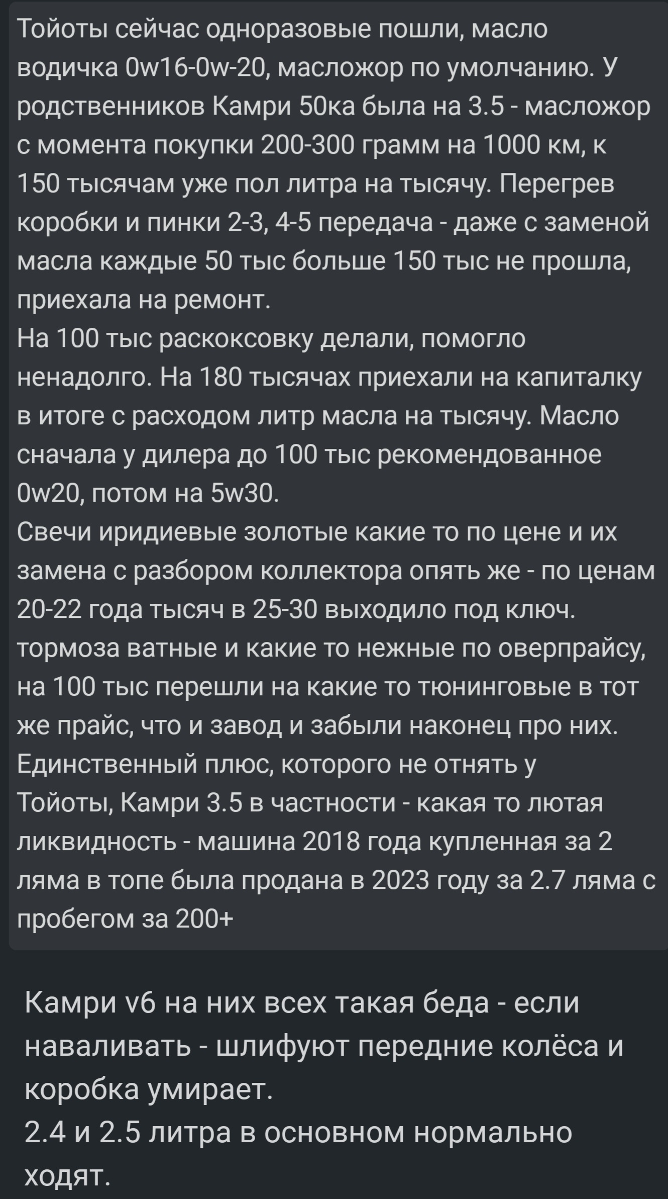 >>6732629 >Нахуя? Он сказал что может быть проблема с шестеренками или что-то такое и мб придется менять их. >Какие нахуй газы в расширительном бачке? Хз, он сказал такого не должно быть. >А какой у тебя был? >Если был зелёный - скорее всего G11, если красный - G12 хотя, после промывки, вообще пахую. Красный. >5w30. >Я на свою сузуку беру луцойл синтетику, нормальное масло и недорого. Узнаю есть ли такое у нас, думаю его и возьму, спасиьо!