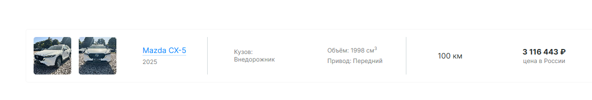 Еще в сентябре привозили CX5 на переднем приводе и в достаточно простых комплектациях в 2.5-2.7. Цена росла при добавлении опций (тех же подогревов сидений например) потому что сами опции, а потом еще 48% сверху пошлины и некоторые брали базу просто из-за цены.