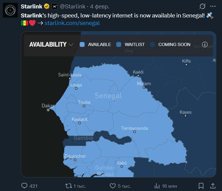 В Таджикистане начал работать спутниковый интернет Starlink. А летом 2025 года компания начала предоставлять услуги связи в Казахстане и Азербайджане.