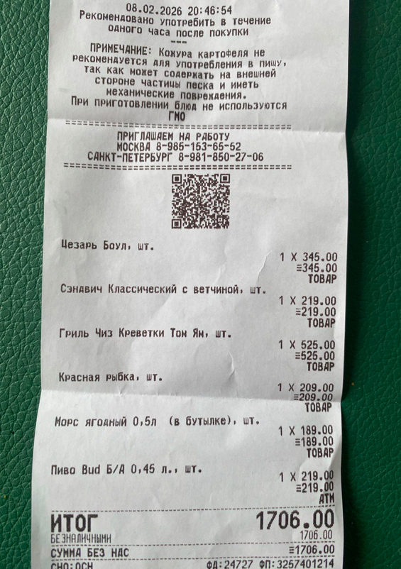 И это еще не весь чек, там была пинта пива за 180р купленная до этого в ашане и банка беалкогольного за 90. Нормально да что перекус в фастфуде стоит уже в 2тр? Расскажи мне как это хорошо для моего бюджета и уровня жизни шизло замкадое пиздобольное.