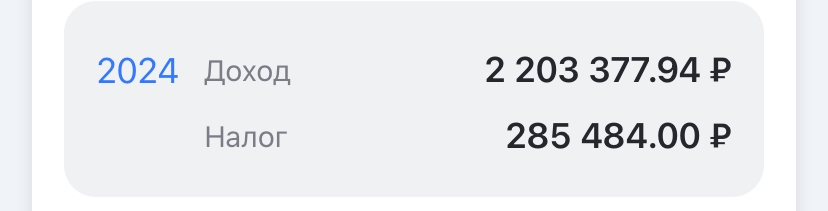 >>6748993 В интернетах можешь бесплатно и без СМС посмотреть доход. Сразу 6% на всё прикинь. Потом добавь туда зарплаты/оплаты и НДС на траты. В итоге безусловно очень смешная сумма получится в несколько раз больше твоей годовой зряплаты.