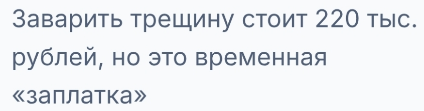 п.с. сварка конечно таких денег не стоит, хотя аппарат и ляма 3 может стоить иной, работа в комплексе имеется в виду оплата идёт за неповторимый трюк, эта вам не зта, тут понимать нада