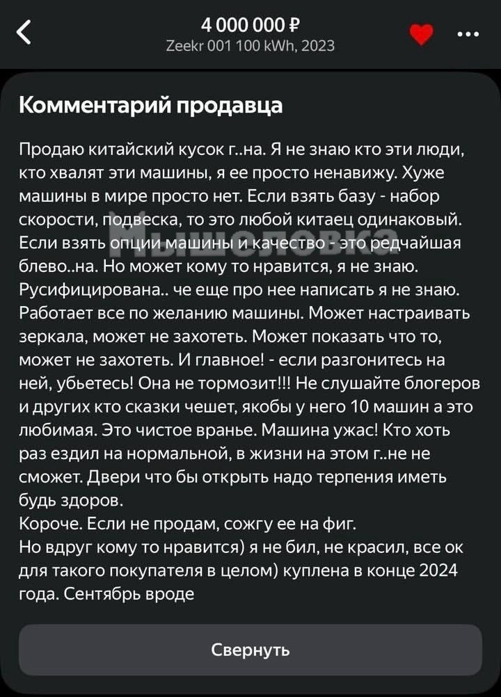 >>6752493 Ща пойдёт шиза: куча китайских брендов, считается, наглухо зашкварилась об РФ (иначе причин клепания брендов тупо нет) и опасается вторичных санкций. А джили такие ХУЯК и "А МЫ СРАЗУ ПОДДЕРЖИВАЛИ УКРАИНУ И ВОТ ВЫПУСТИЛИ БРЕНД С СОЗВУЧНЫМ КИЕВСТАРУ НАЗВАНИЕМ!"