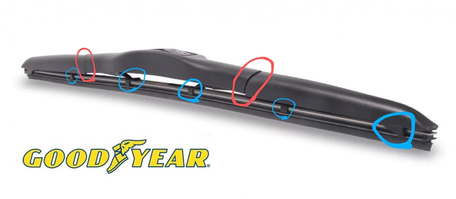 >>6759298 >Минут 10 стоял, чесал репу Ну нихуя себе. Я два года чесал репу, менял резинки и подтягивал пружины поводков. В конце концов понял, что в нижнем и верхнем положении дворника геометрия стекла совсем разная. И за эффективный прижим отвечает не только пружина, но и двигающиеся части щётки (красные). Если в щели между ними забился лёд или другой говняк, то щётка не будет гнуться и повторять геометрию стекла при перемещении. Низ стекла она худо-бедно почистит, а в середине и выше будет касаться стекла только краями. И ещё при изгибе резинка делает продольные перемещения в пазах. Если в пазах лёд (синие), то прижиму тоже пизда.