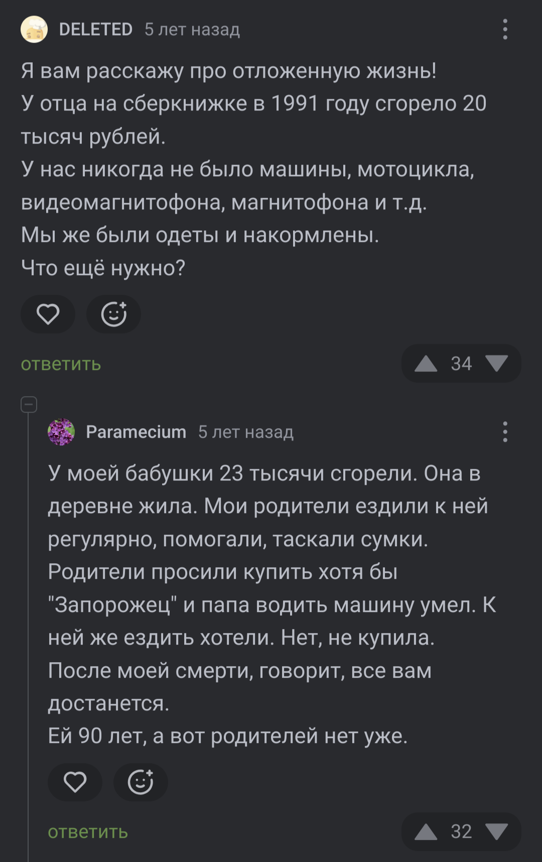 Но эти чуваки сознательно отказываются от личных бытовых трат во имя детей или вообще без причин. Не знаю, почему некоторые люди не тратят деньги, а экономят и откладывают в еврах. У самого есть такие коллеги и друзья, кто сначала отложат 50тр с зарплаты, а потом живут на оставшиеся. И так годами. Это фича людей 1970-1980гр.