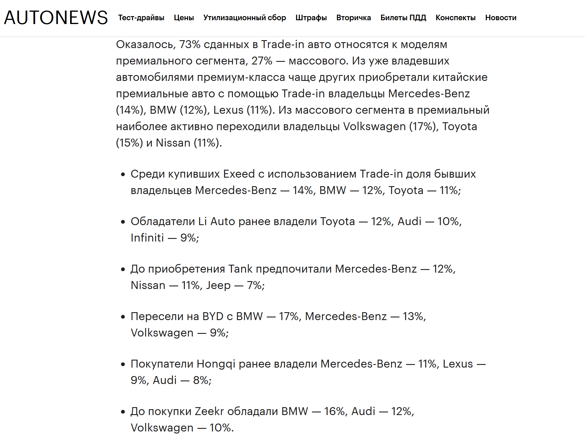 >>6770416 Ну так правильно. Все китаедауны забились под лавки и не отсвечивают. Сказать, что ездишь на китайце просто позорно. Лично я хотел поменять свою десятилетнюю Крету на какой-нибудь китайский премиум, но недавно увидел пикрил чистокровного немца и влюбился. Теперь буду брать такой же.