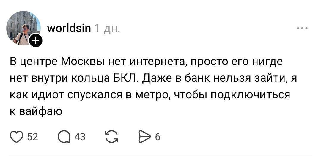 Принудительная привязка к интернету и бесконечным приложениям этот инет требующих - в нулевых никто подумать не мог, что телефон без интернета превратится в кирпич. Из этого следует, что при любом отключении интернета (как активно делают всж) людей начинает массово корежить, как рыб без воды