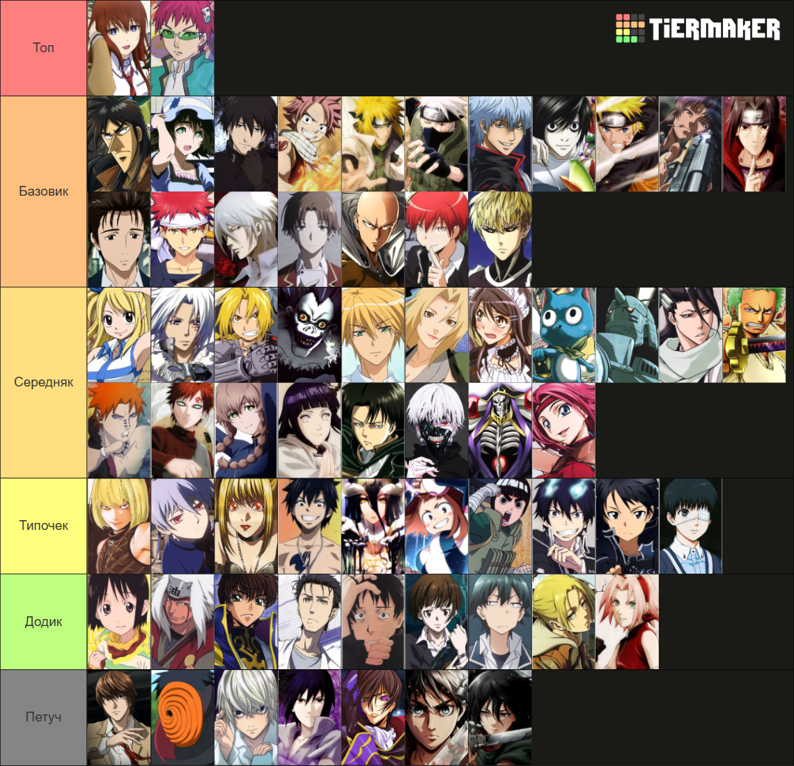Опу могу сказать то, что тирлист в целом базовый, но есть не мало недочетов. Например Харухи я бы воткнул в интересное, а наруто в кал.