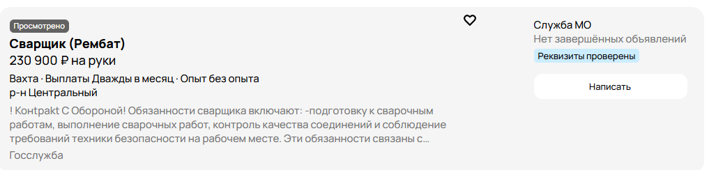 увидел пикрил на авито. Сварщик на сво в рембат. какие подводные? есть ли среди анонов кто ездил на вахту сварщиком в лднр. хочу поехать на гойду из-за того, что в моей мухосрани макс зп сварщика ~60к, на вахте максимум 100к