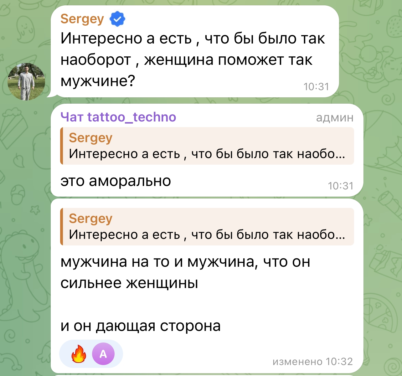 Когда Федя пришёл меня сменить, я не разговаривала с ним. Потом он несколько раз писал в личку. Последнее сообщение было: