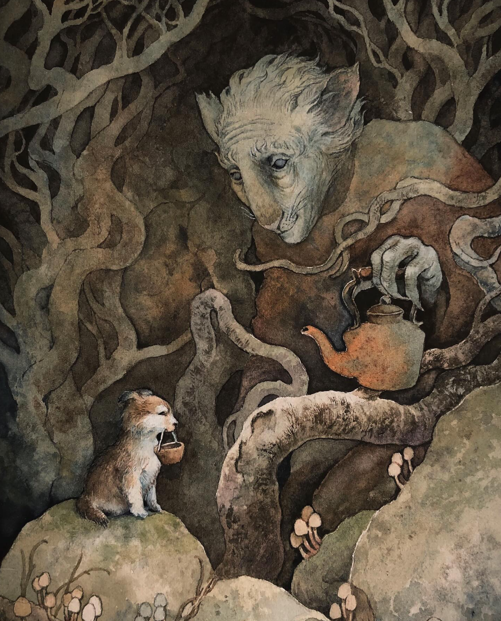 а я читаю какую-то странную японскую сказку где герои постоянно поют песенку про лисий хвостик