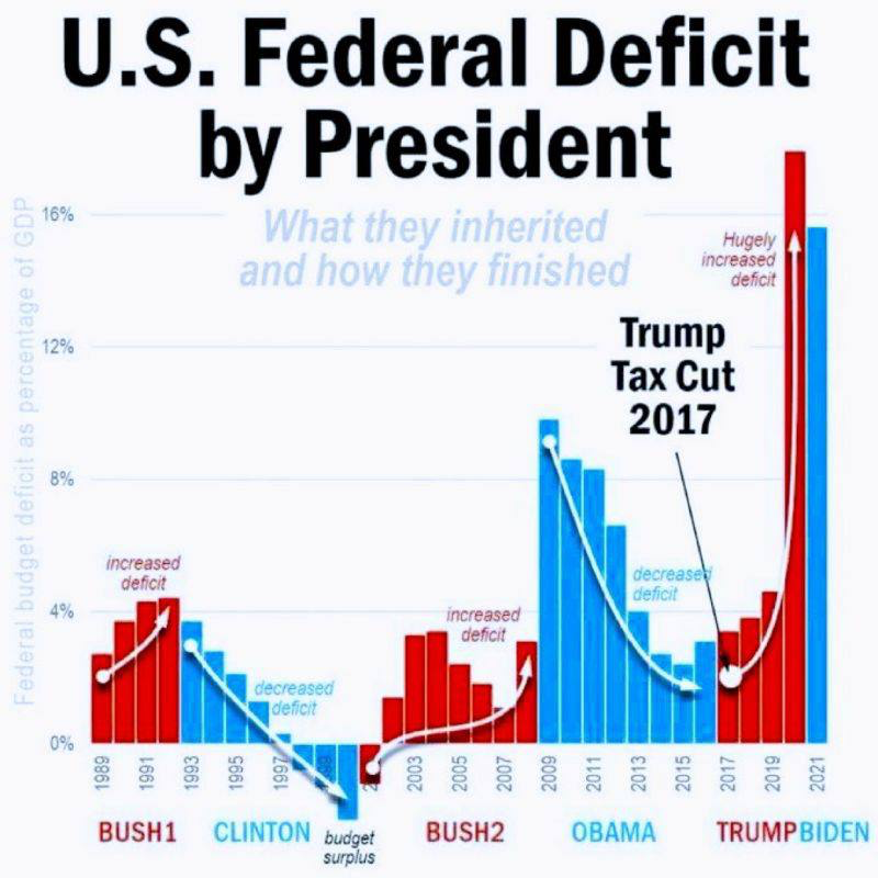 То есть ВВП вырос на 4 трлн долларов, долги на 9,5. И это официальная статистика. Я вообще недоумеваю как такое возможно. Занял 9,5 трлн, а экономика выросла только на 4. Ни до, ни после этого долбоёба такого не было, но и пофиксить это уже невозможно. Он не разрушил страну только из-за невероятного запаса прочности.