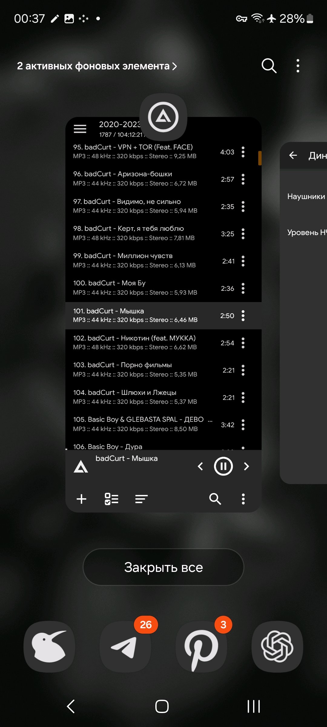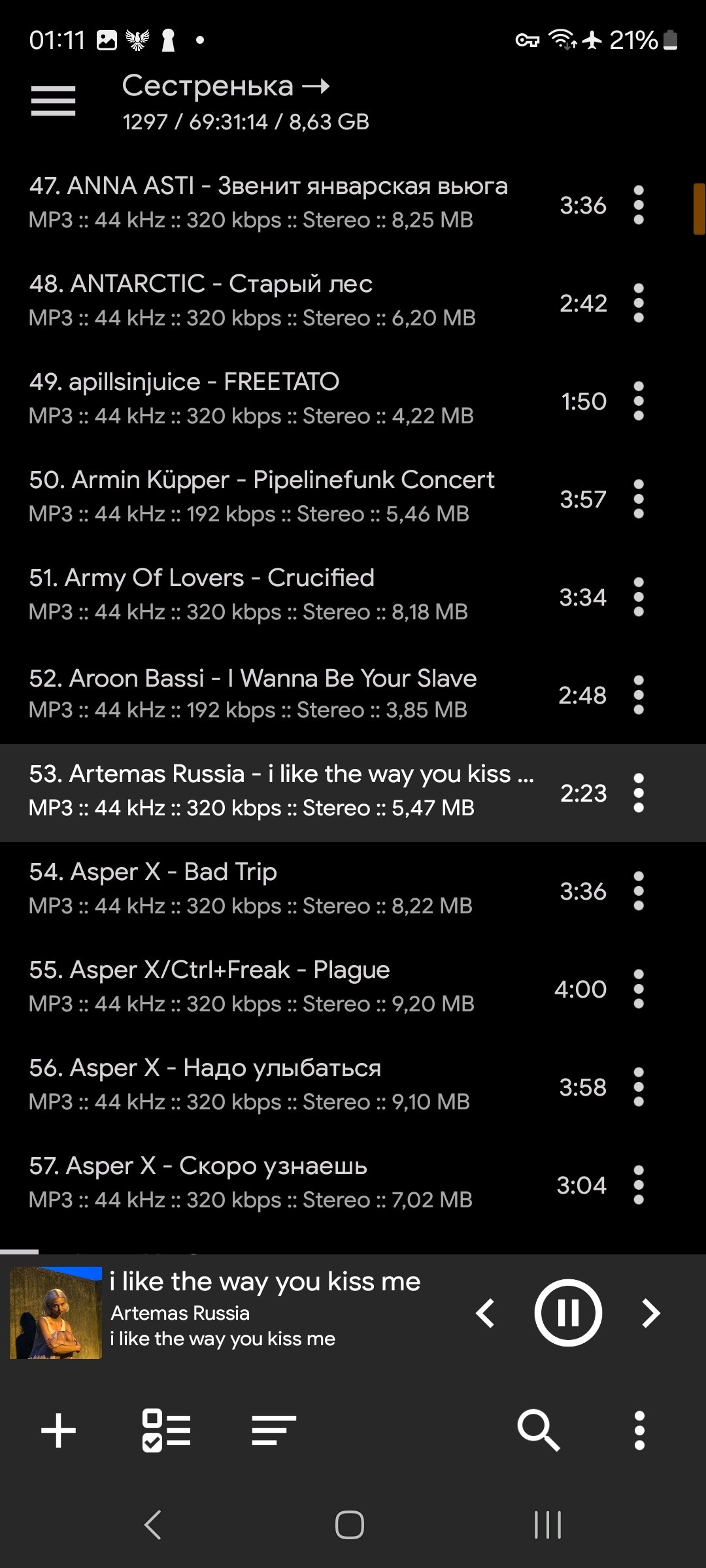 >>325211932 (OP) локально через AIMP лол, у меня музыка поделена на временные жизненные рамки, суммарно 4 тысячи песен, недавно еще одну тысячу песен у сестрёнки спиздил.