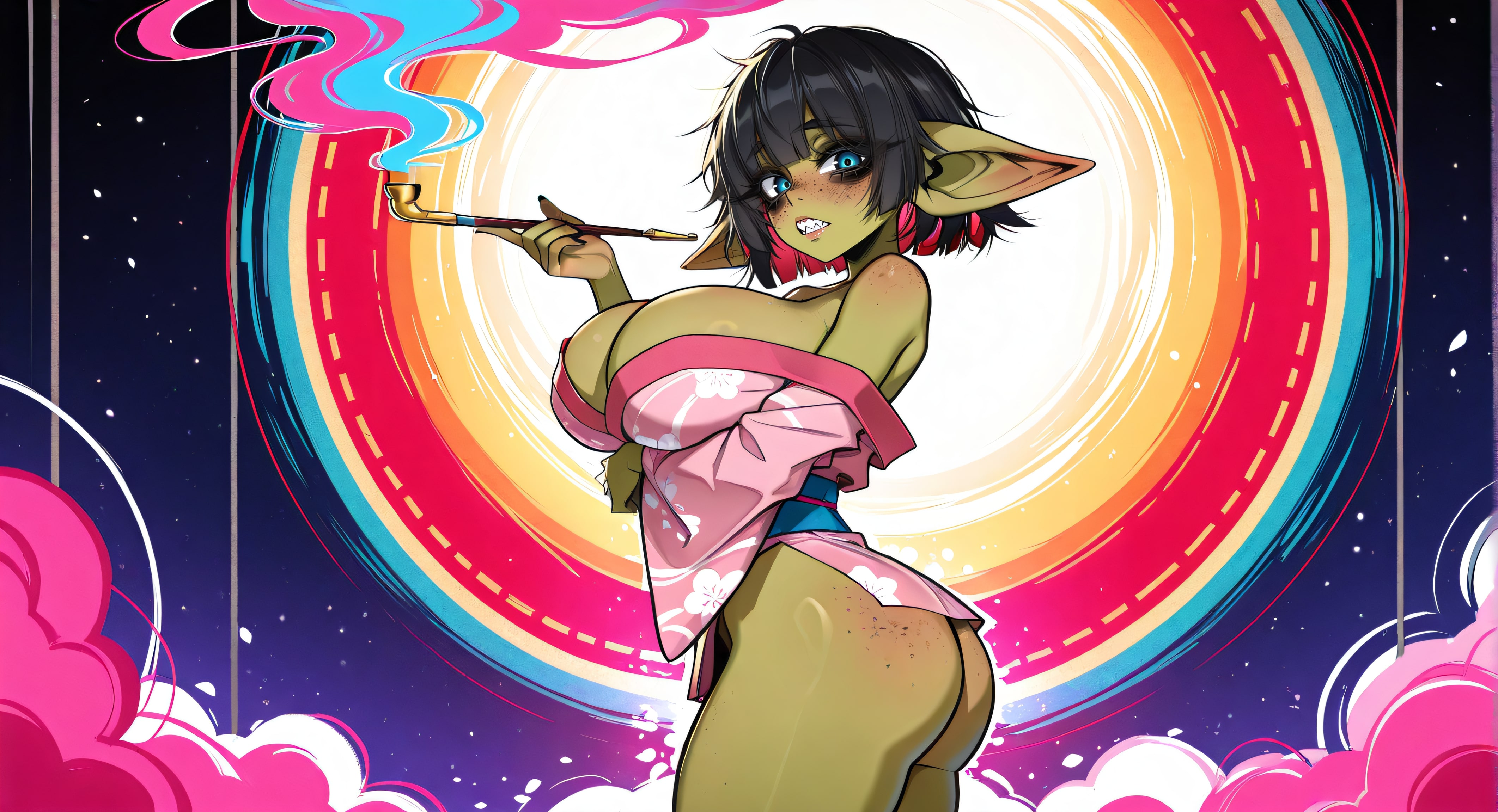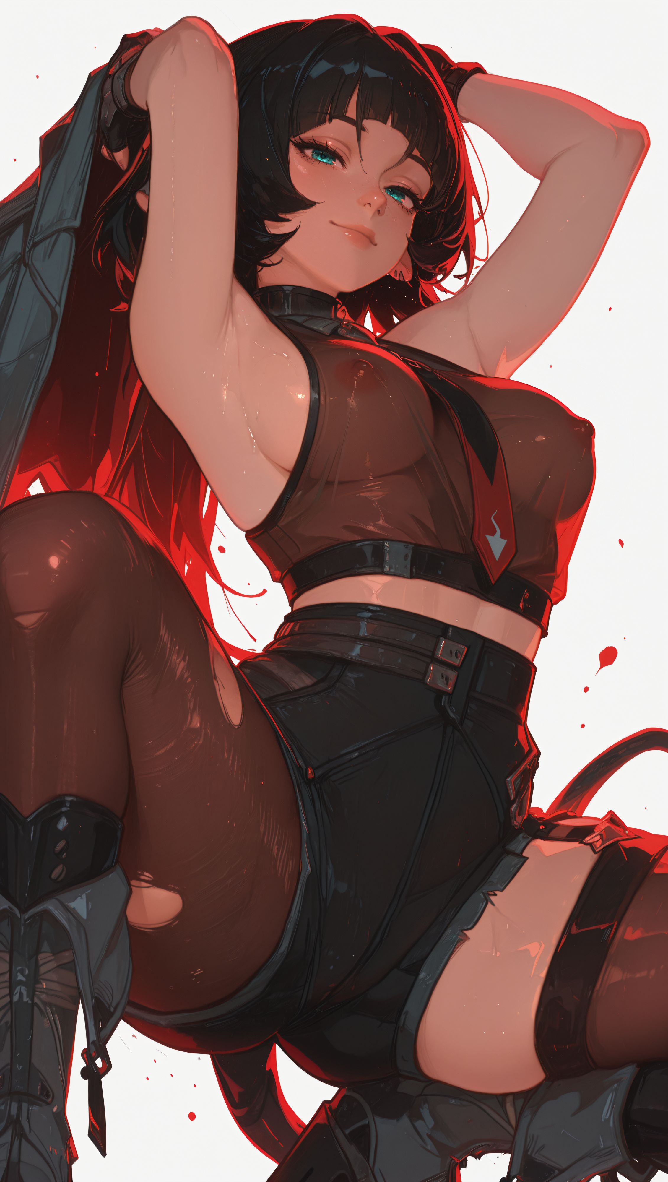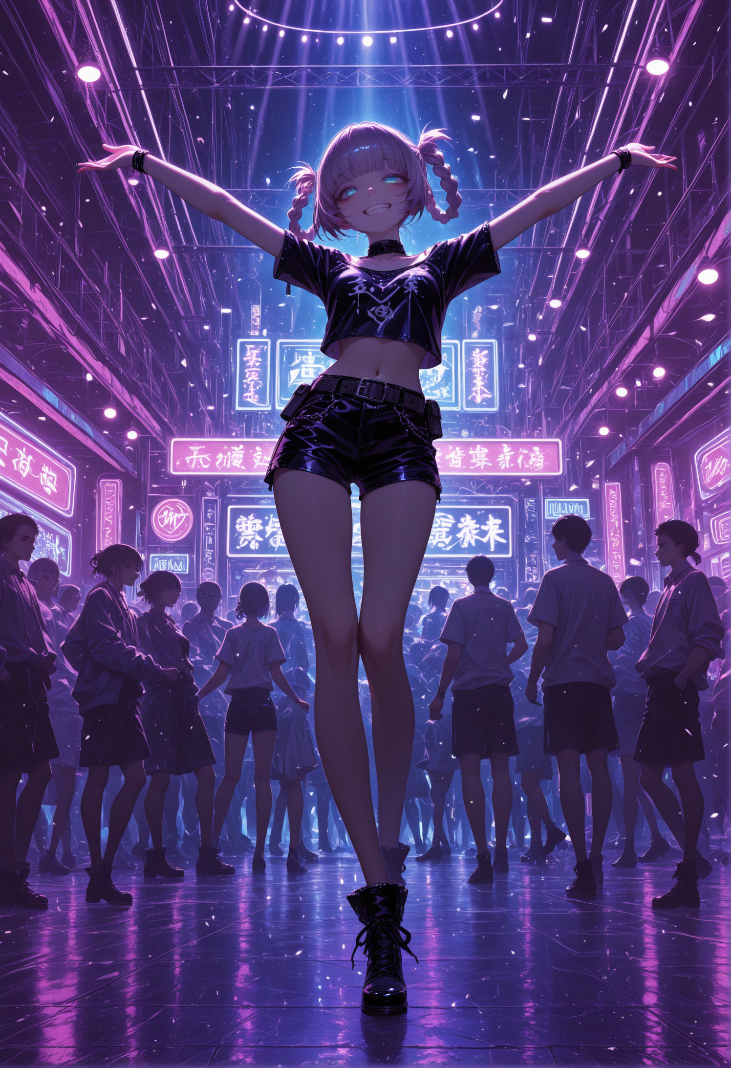 >>325689700 Ну стиль я никак не повторю, могу челу только промт дать 1girl, nanakusa nazuna \(yofukashi no uta\), black shorts, belt,[[abs]], sitting, spread legs, seductive smile, half-closed eyes, pov, indoors, night, dim lighting, neon palette,