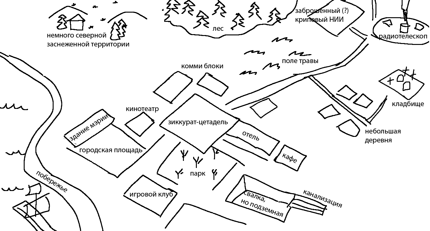 >>325757579 Вот короче приблизительная карта арта. В реале это всё, конечно, будет располагаться намного плотнее друг к другу. Здесь показаны самые основные локации. Короче говоря, это городок и его окрестности