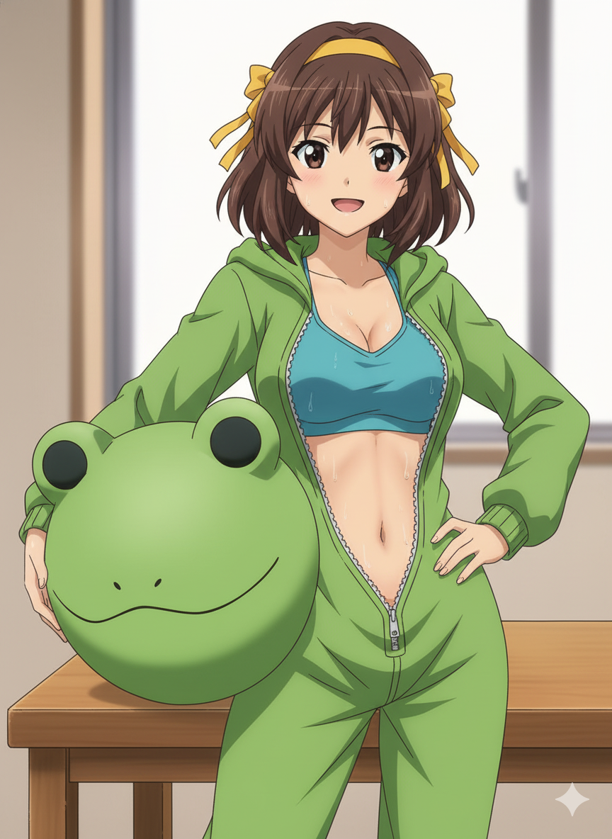 В смысле персонажа почти никто не знает и у нейронки нет образца, по которому генерировать? Тогда можно заменить персонажа на любого другого вымышленного персонажа (кроме фрыни, с ней уже есть подобная картинка). Главное, чтобы персонаж сам по себе выглядел достаточно забавно.