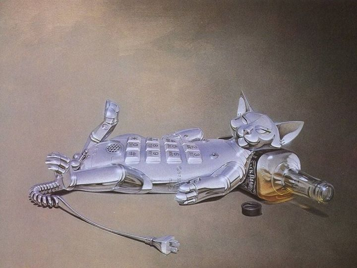 сцена 1: Уютная, но потрёпанная квартира в советском стиле: цветочные обои, старая деревянная мебель, маленький телевизор в углу, кружевные занавески, фотографии в рамках на стенах. Очень старая и больная бабушка в домашнем платье и тапочках сидит в потёртом кресле и вяжет. В комнату аккуратно заходят двое соцработников в аккуратной униформе. Один из них держит стильного футуристического робота в виде кота — гладкий металлический корпус, плавные формы, ярко светящиеся глаза. сцена 2: Соцработник говорит мягко и ободряюще: «Сейчас мы переселим ваш разум в этого робота». сцена 3: соцработник соеденяет проводом робота и голову бабушки, бабушка теряет сознание сцена 4: Резкий переход на крупный план: робот-кот с горящими глазами слегка наклоняет голову и радостно, с лёгкой электронной интонацией, произносит: «Ой, беда! как я теперь вязать то буду?!» Сцена сочетает ностальгическую атмосферу советской квартиры с элементами мягкого, дружелюбного научного фантаста. Тёплое освещение, кинематографическое качество