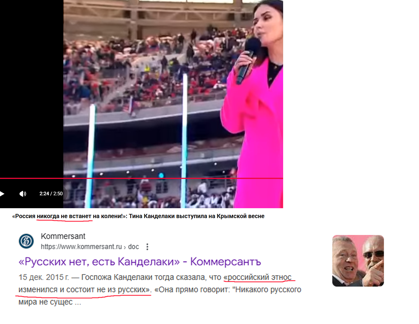 >>325793758 >>325789182 Она очевидно вписывает себя в русские. Русские это имперская нация. В нее можно вписать и грузин и негров и кого угодно. Пушто это империя!!! Впрочем в других странах также. Пасматрите на укров. Еврей Зеля, кореец Ким и русский Сырно записывают себя в украинцы. Обэма записывает себя в американцы и тд и тп. Монрэтничесеие страны это какие то мелкие островные