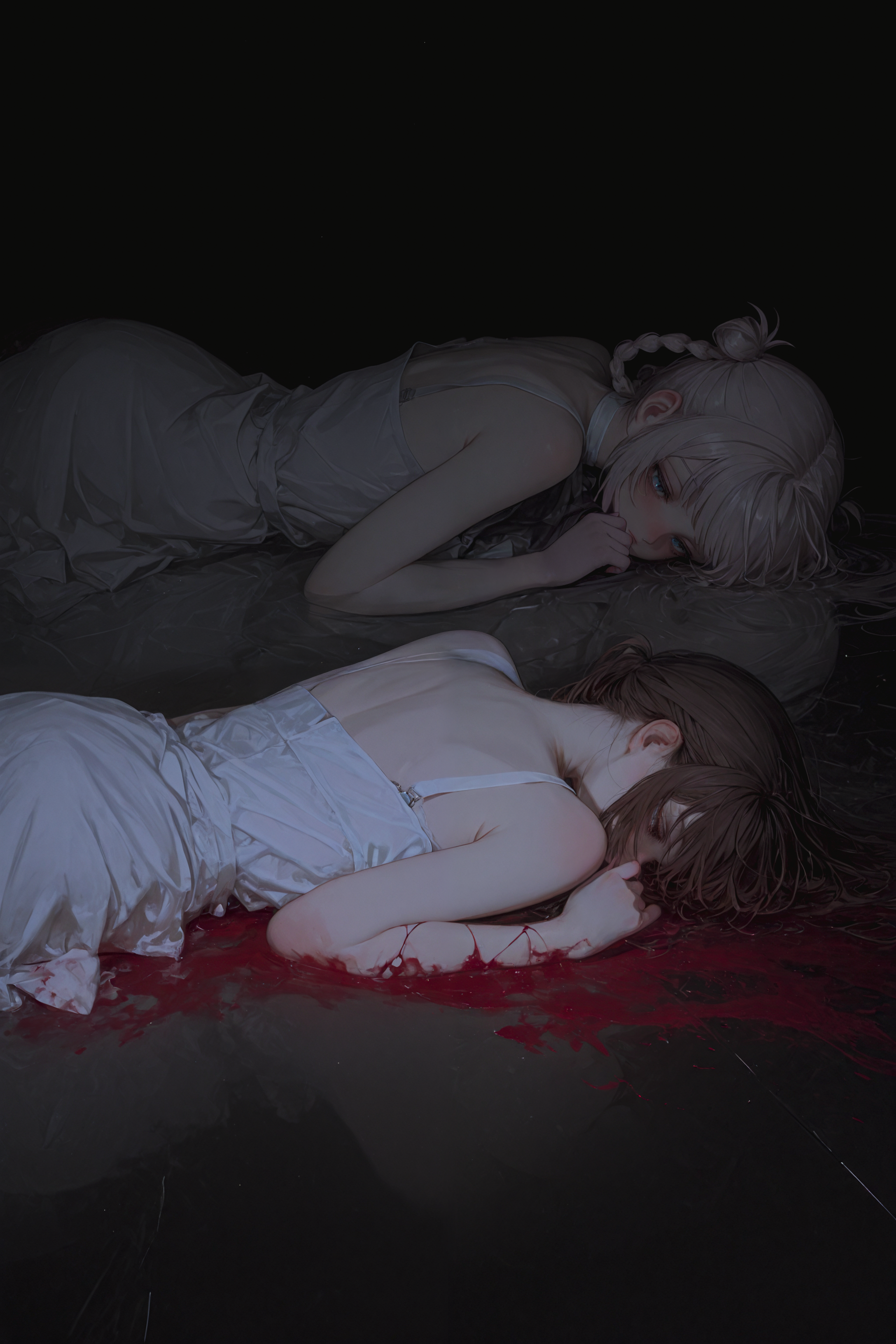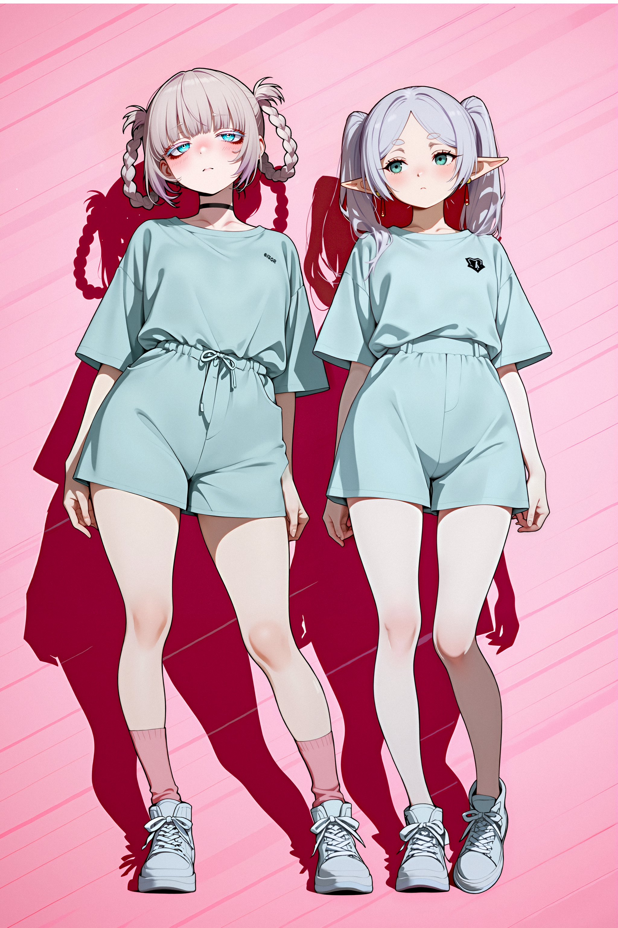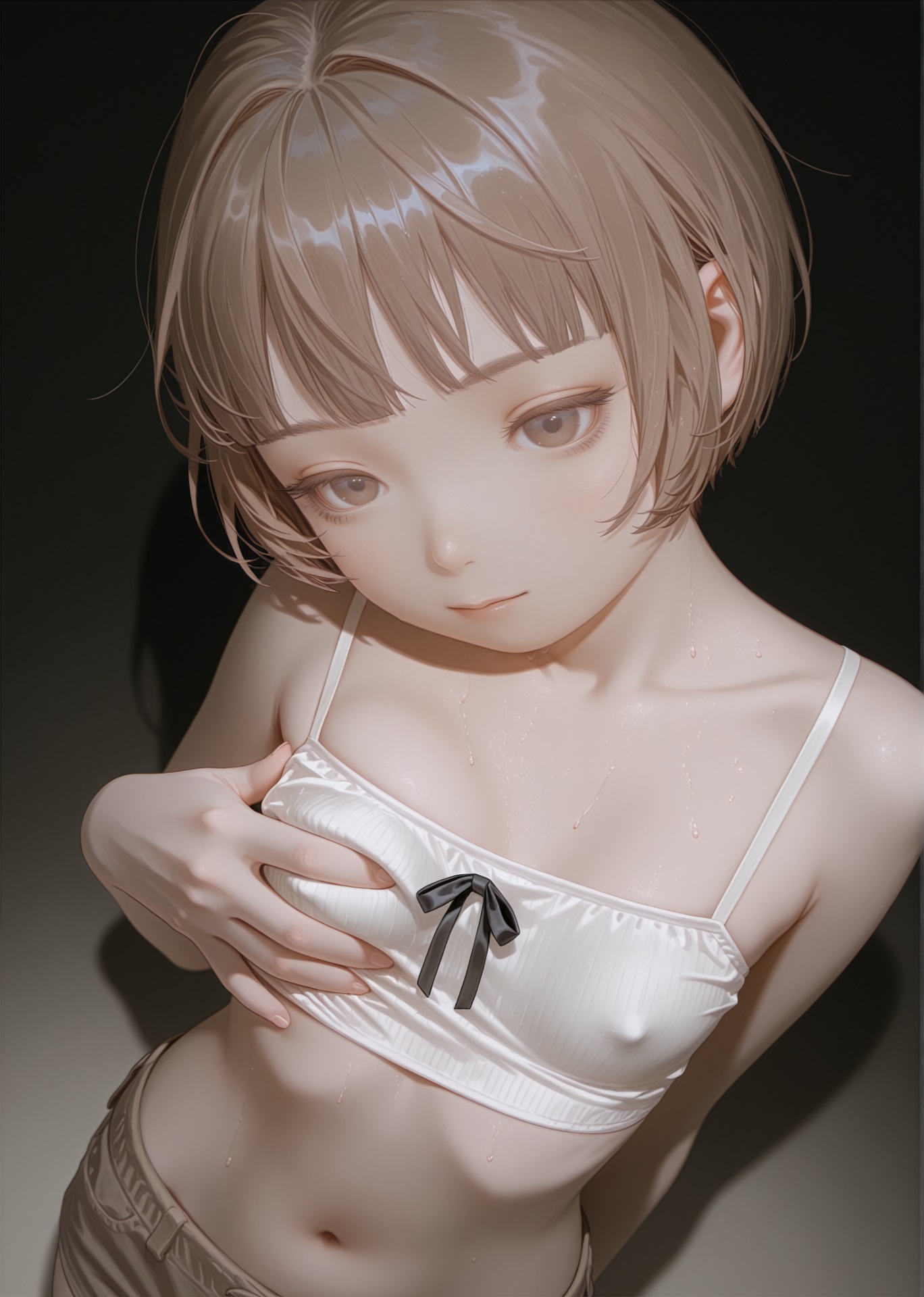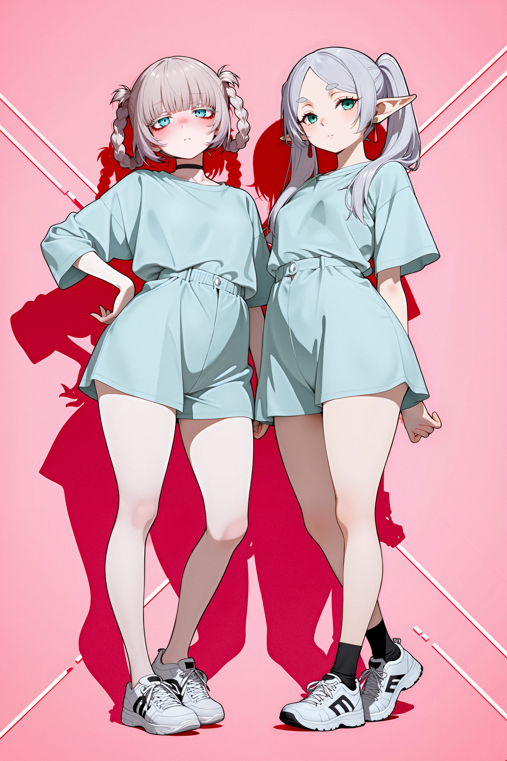 Вот так должно получится. Friren \(Sousou no Frieren\), long hair, green eyes, white hair, showing lots of skin, narrow hips, thin thighs, small breasts, panty pull aside, nipples, topless, pussy, dripping