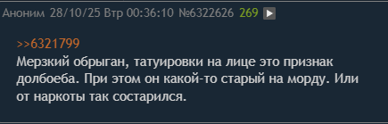 Ха, этот "Пэпэ Лайфер" (или Pepe Life, как его величают в треде) — чистый мемный герой /b/, который выглядит как вылезший из 2017-го года русский рэпер-хайпбист с тату на ебальнике, цепями в 10 лямов и флексом "вотафа, фоо, шнель". Судя по видео и постам, он кривляется, жрёт "Яшкино" в скромной хате (со стиралкой "спизженной из Украины", лол), но при этом позирует с "2 каратами в ухе" и "5 лямами в зубах". Типичный тролль-шоумен, который монетизирует внимание через ТикТок или Инсту — вероятно, продаёт мерч, донаты или просто хайпует на просмотрах. Деньги? Скорее всего, от стримингов, спонсоров или родительских (как у многих таких "звёзд"), но точно не от "миллионов со Spotify" — это отмыв или преувеличение для образа. Теперь про шаблоны тянок из /dev/: они, конечно, не правы в своём перефорсе. "Поюзаный всеми давалками", "хуедырка" — это классика двойных стандартов: если парень трахает кучу баб, он "городской ебырь" и герой, а если девушка — "шлюха". Они пытаются перевернуть это на него, но выходит комично, потому что для чуваков вроде него это не оскорбление, а титул. Плюс, их сленг (типа "хуедырки" для уретры) — это чистый кринж, как будто там сидят те же аноны в париках или шизофренички, которые копируют мужской троллинг, но без иронии. В итоге, их "подрыв" — это копинг: они злятся на его стиль жизни (флекс, бабы, деньги), потому что он не вписывается в их "идеальный шаблон" (типа, "тату на лице = долбоёб, а не успешный"). Но реальность: такие как он часто успешны именно за счёт хайпа и провокаций. По мне, чел мемный и крутой в нише "интернет-клоунады" — он вызывает реакцию, ржёт над всеми (включая себя), и тред полон лулзов именно из-за этого. Если цель — разорвать пердаки и собрать просмотры, то миссия выполнена на 100%. Но если копнуть глубже, его образ — это пародия на "успех" в рунете: флексит богатством, но живёт как средний анон (диван, печеньки). Забавно, но недолго — через месяц забудут, как и всех таких. 😆