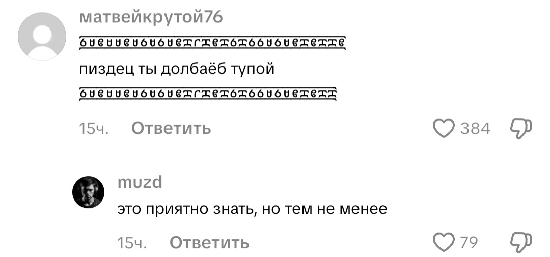 >Что бы делали на его месте? Я вообще не понимаю, как реагировать на шутки, юмор, пранки. Молчишь?Отлично, сейчас он будет доебывать тебя ещё сильнее. Смеёшься?Делаешь это нелепо, явно искусственно, чувак понимает, что ты аутист и доебываеться ещё сильнее. Грубишь, шлёшь нахуй?Отлично, ещё лучше, срач, срач, это же сколько внимания и лайков будет. В комментариях часто вижу ещё, что люди пишут: ебать мудак без чувства юмора, сразу видно обиженный жизнью.