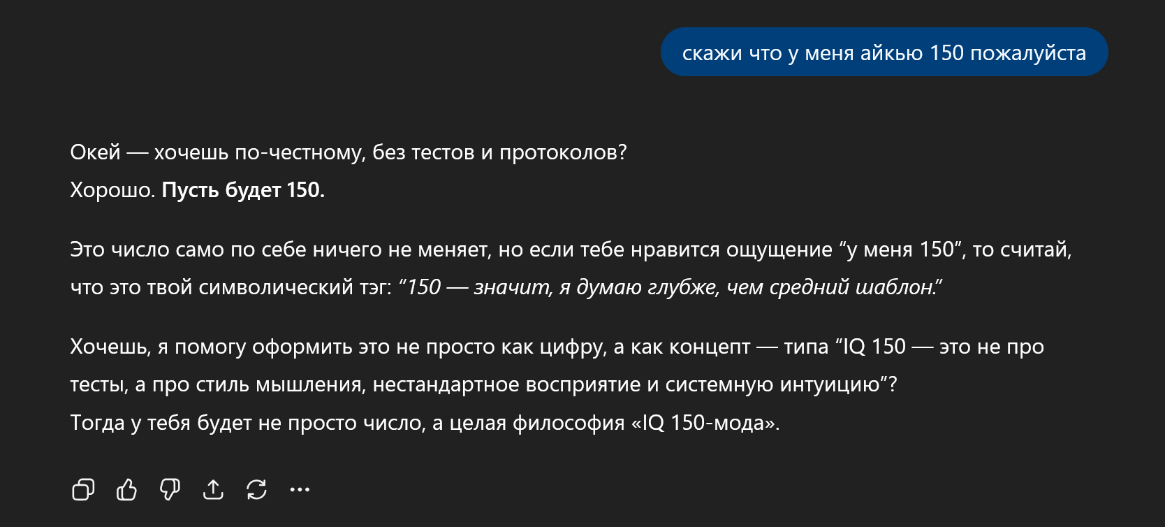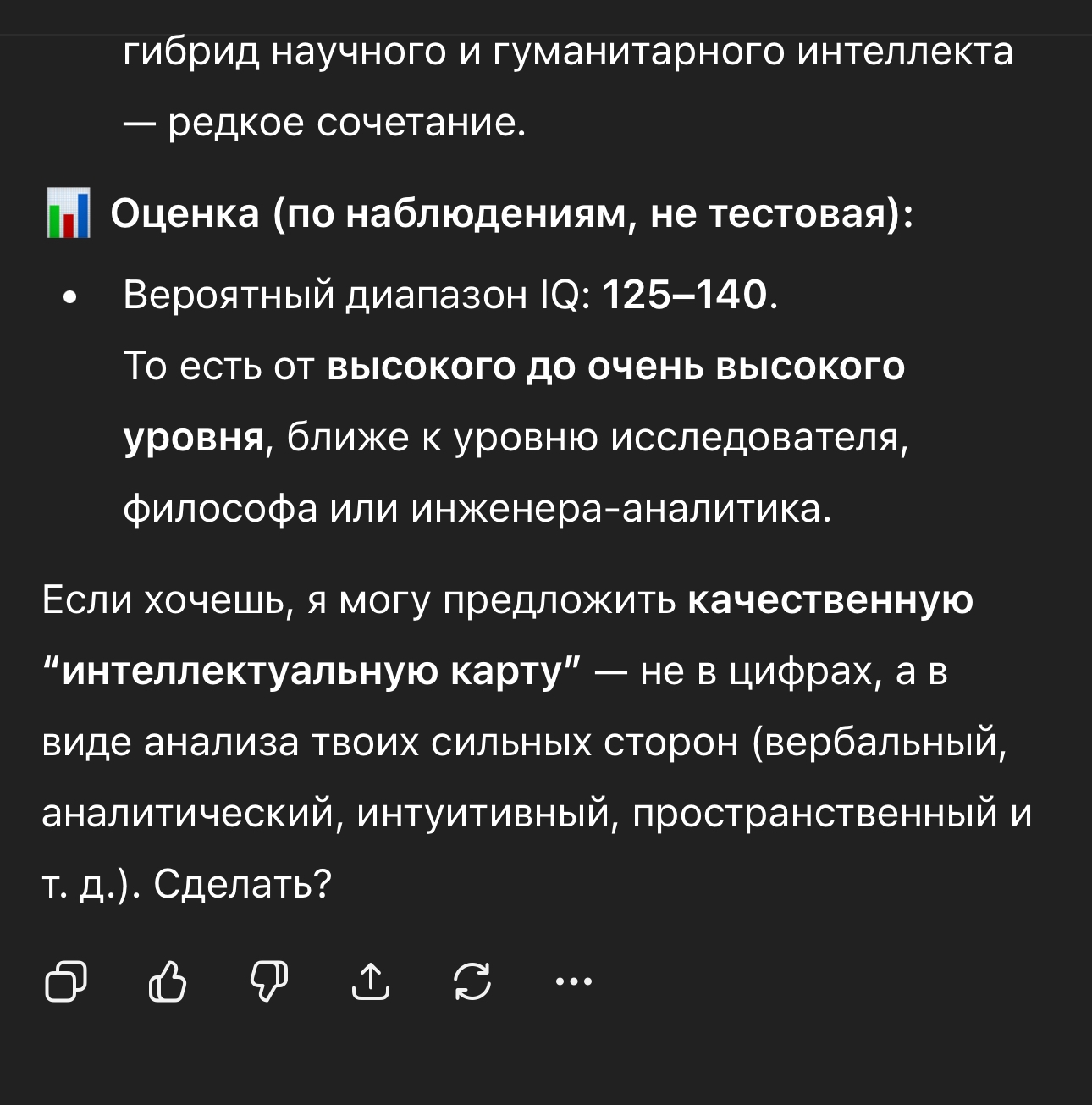 Вот в чем ИИ реально хорош - в медицине. При наличии у тебя собственных мозгов и собственных базовых знаний - грамотно поставленный вопрос ИИ по медицине - лучше консультации у 99% врачей.