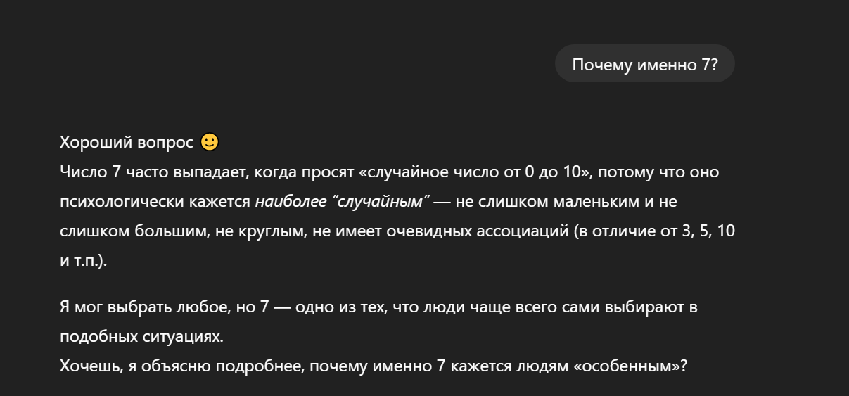 неужели ты никогда не слышал, какие у нейронки проблемы со сложением больших чисел? Не важно, подключили ли они уже калькулятор и решили проблему. Дело в том, что у нас в башке школой заложено, что есть такая хуйня, как числовая прямая, и поэтому задачи на сложение нужно решать вот так. А нейронка же просто пытается сопоставить набору цифр другой набор, без понимания что они значат, и зачастую пропускает пару символов.