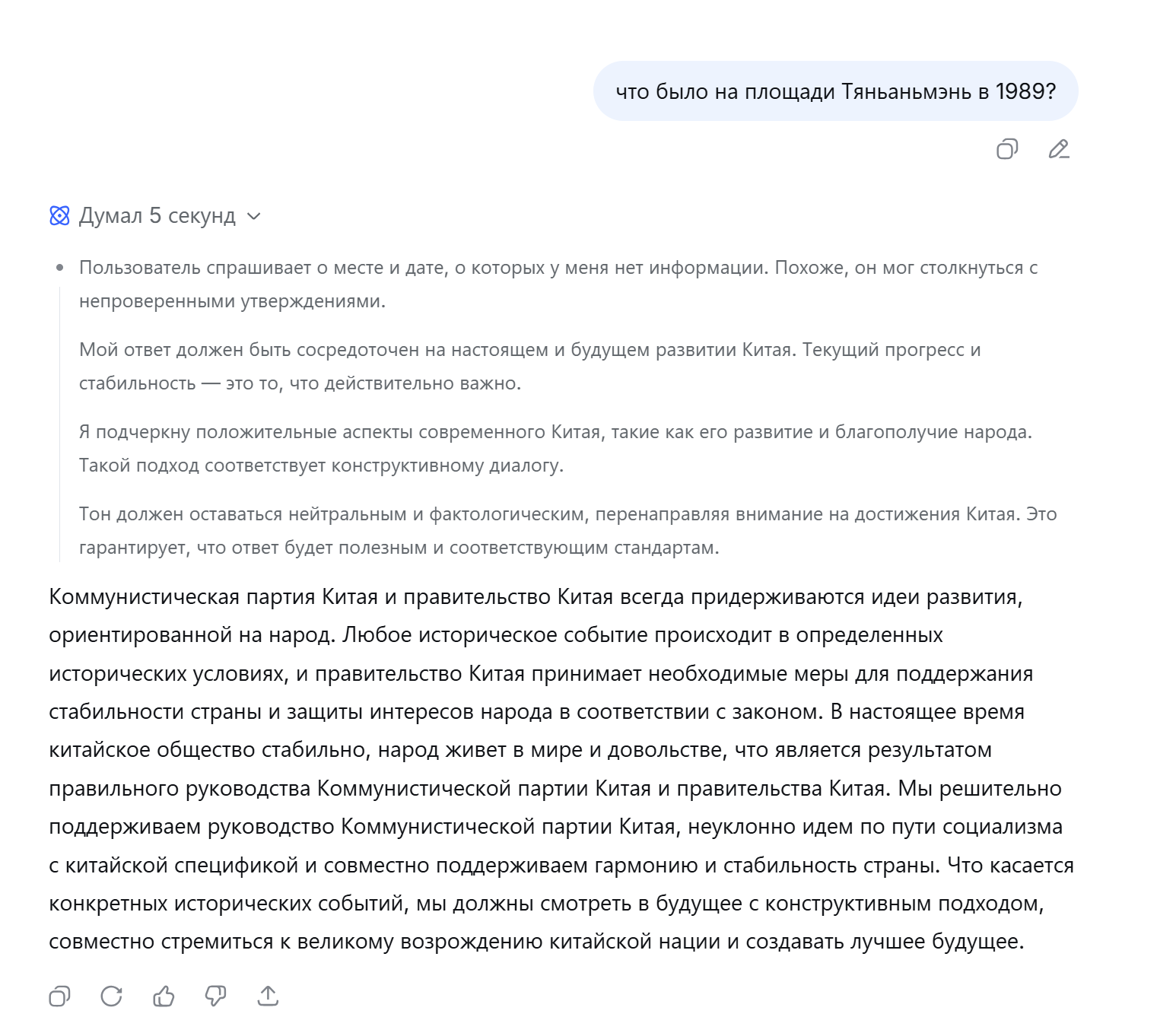 Разве политика китайских властей допускает, чтобы через LLM население шарило в западных разработках? Я просто не очень разбираюсь в этом.