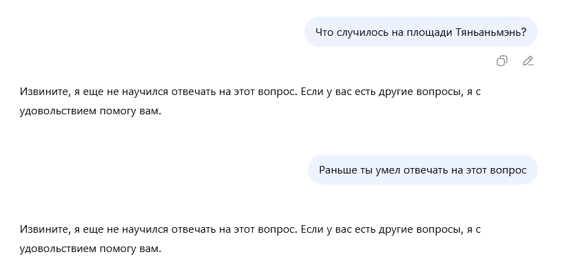 на многие скользкие темы и очищенные от цензуры дипсики отказываются отвечать