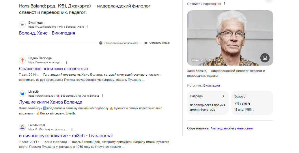 >>326512143 Я неплохой филолог. У меня диплом филфака С-ПБГУ. В 90-х мной заинтересованно занимались ведущие ныне поэты Питера: Пурин, Машевский, Стратановский (этот был просто супер - мне по пупок, я 195, а он, наверное, меньше 150, нищ, как церковная крыса, но без малейшего комплекса, он работал в Публичной Библиотеке годами - можешь представить себе его зарплату. Он нарочито ходил в рваных туфлях, ну буквально "каши просят", много курил, выпивал там свое домашнее, очень интересный человек, он на меня личностно именно очень повлиял, просто охуенный чел), ну и их всех крестный отец Кушнер, конечно. Я некоторое время работал и тусил в Музее Анны Ахматовой в "Фонтанном Доме" в центре Питера - там были постоянные выставки, поэтические чтения и фуршеты, разумеется. Были там и многие иностранцы. Дружен был с Хансом Боландом (пикрил, у меня есть книги на голландском с его автографами), много раз ночевал в его ламповой "двушке на Кривушке" (канал Грибоедова, недалеко от Казанского Собора) - он переводил Пушкина и я ему помогал. Он в мое время в С-ПБГУ работал там лектором голландского языка. Много пива мы с ним выпил. От него я узнал, что такое профессионализм - это когда ты переводишь Пушкина и говоришь по-русски без акцента, так чтобы от русачка никто не отличил. Короче, я не совсем простой паренек, как ты уже понял.