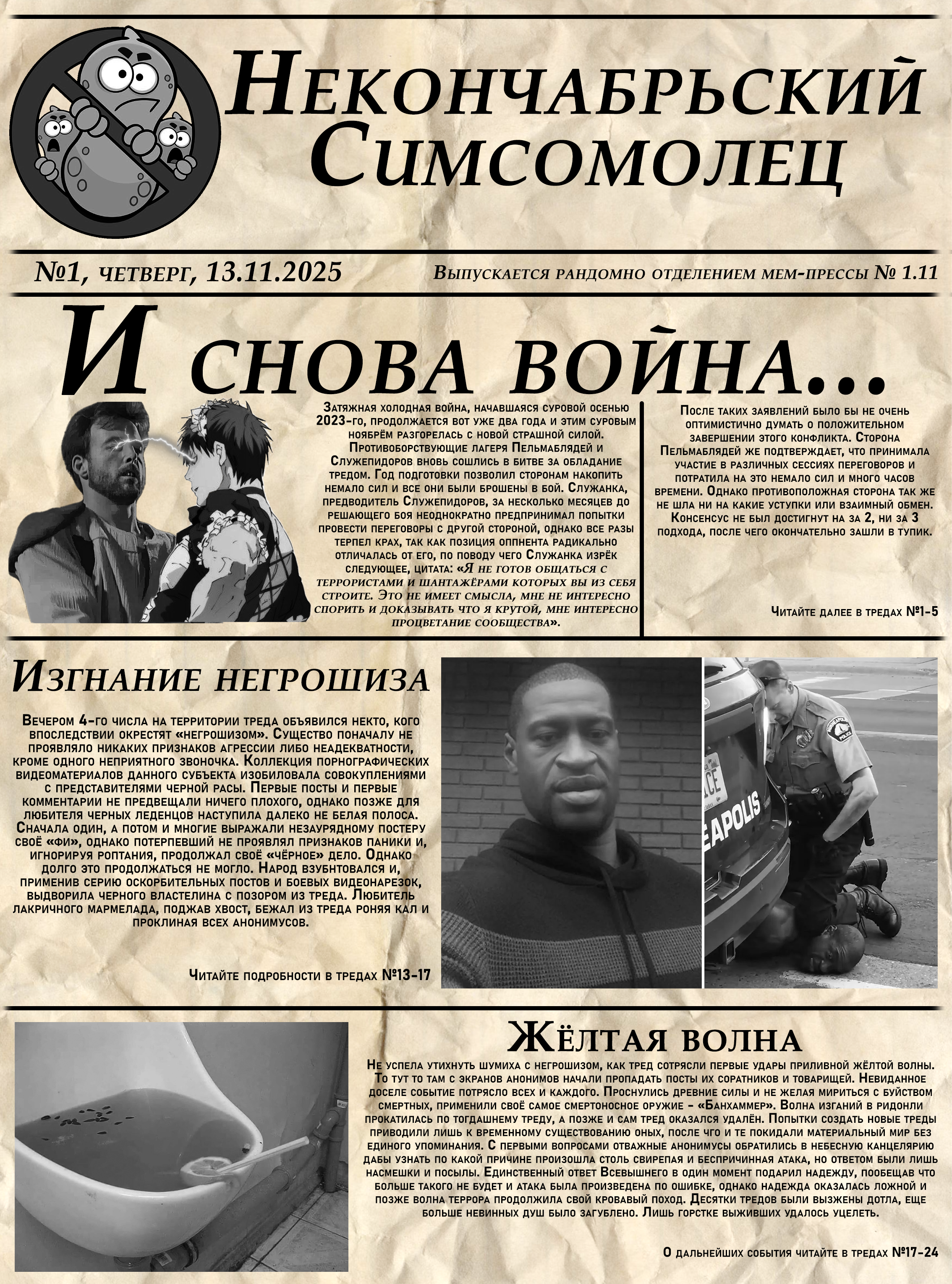 >>326675518 Надо собирать новости на новый выпуск. А новостей пока и нет. До уровня сельского пейсаки типа "У бабы Фроси отелилась телушка", "Дед Трофим нахуярил самогона" и т.д. опускаться не будем. Нужны громкие сенсации нк или фото человека паука у меня на столе к обед.