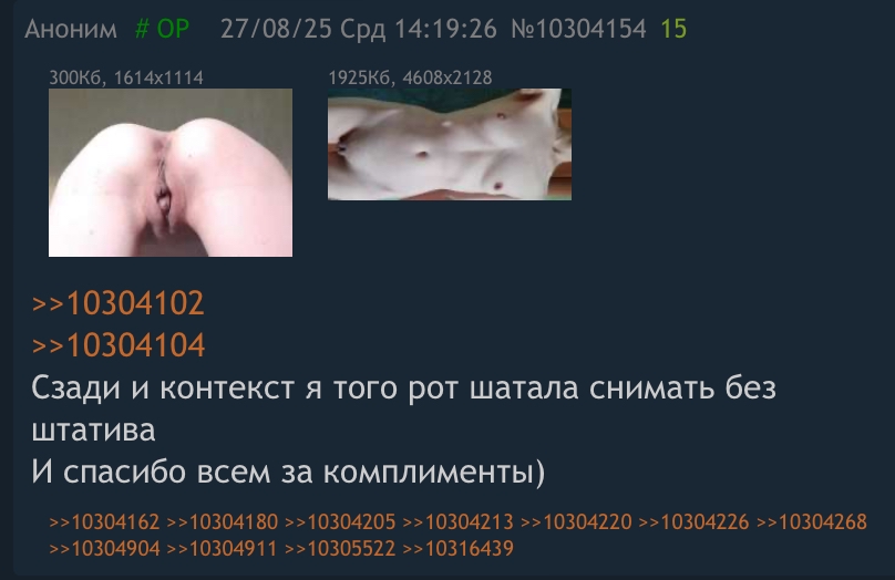 >>326799176 На самом деле на даче сидит дохуя и нормис тянов. В окружении сидит 7 кунов и 5 тян. Точно знаю, что минимум 1 кун и 3 тян на дыачах бывают, причём все они от возраста 24 до 38. Случайно палил. Так что ещё хуй знает, сколько их тут.
