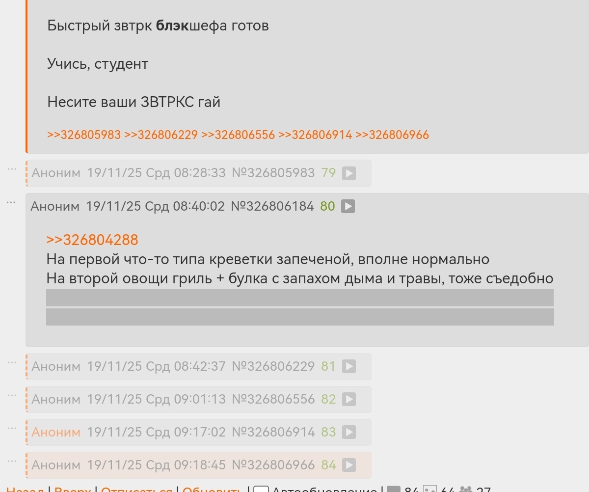 >>326804288 На первой что-то типа креветки запеченой, вполне нормально На второй овощи гриль + булка с запахом дыма и травы, тоже съедобно Вспомнилось, как в деревне помогал резать бычка, в какой-то момент у него лопнул желудок и за пару секунд оттуда вылилось литров 20 говна